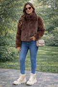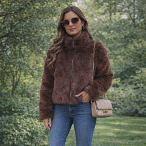 Stay stylish and cozy with the Fashion Stand Collar Plush Jacket, the plush coat that combines extreme softness, modern design, and effortless style.