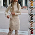 Fashion Turtleneck Knitted Dress With Slit Design Winter Warm Solid Color Pullover Long Sweater Women's Clothing