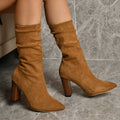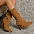 Pointed Toe High Block Heels Boots Woman Winter Warm Mid-calf Suede Long Boots New Fashion Trendy Solid Shoes For Party Lady