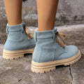 Material da sola: borracha Gênero aplicável: feminino Formato do dedo do pé: bico redondo Formato do salto: salto grosso Altura do salto: plano Botas populares: botas curtas Função: aumentar Altura do cano: cano baixo Método de uso: amarração frontal Material da palmilha: PU Material interno: couro sintético Material interno da bota: PU Material da bota: PU Tecnologia da sola: sapatos de viscose Fechado: cadarço
